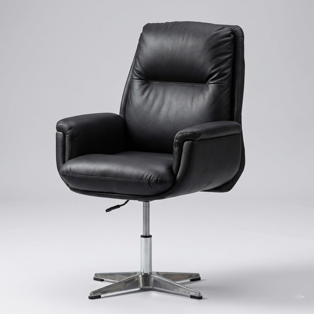 Elevate your workspace with this premium executive chair, designed for superior comfort and modern aesthetics. Upholstered in high-quality black leather with plush, high-density foam cushioning, it offers exceptional lumbar support for extended working hours.